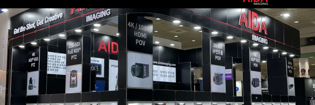 Avançando para a área de sensores e captura, a precisão dita o ritmo. No stand da AIDA Imaging, foca-se nas novas câmeras POV com sensores de 1 polegada. Com o vMix 29 agora suportando 8 Overlays e 8 Stingers, essas câmeras compactas tornam-se ferramentas cruciais para ângulos de close-up ultra-detalhados via NDI ou SRT. Ao lado, na AJA Systems, o destaque é o KONA IP, que se consolida como a ponte de estabilidade necessária para garantir que o sinal OMT (Open Media Transport) chegue íntegro em infraestruturas de longa distância.