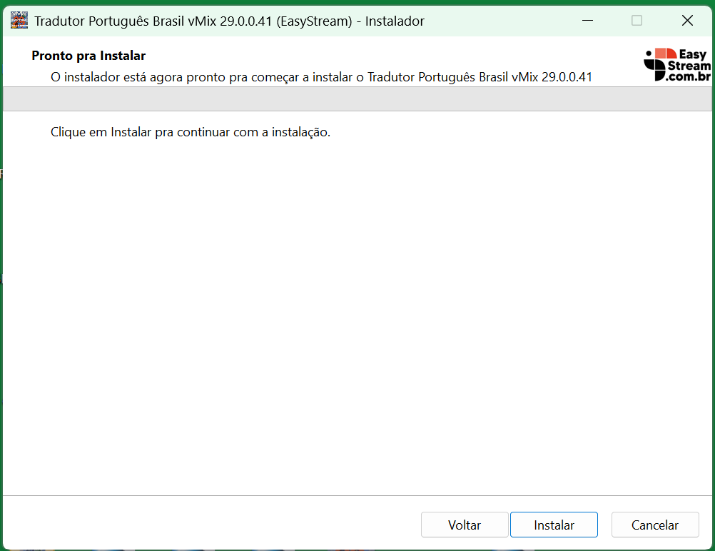 Para facilitar sua vida, criamos um instalador executável (.exe). Por ser um arquivo novo e exclusivo da EasyStream, ele pode gerar um alerta falso em alguns sistemas.